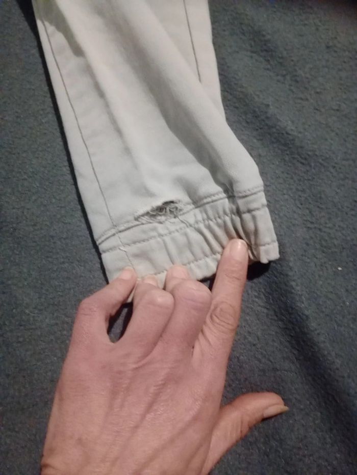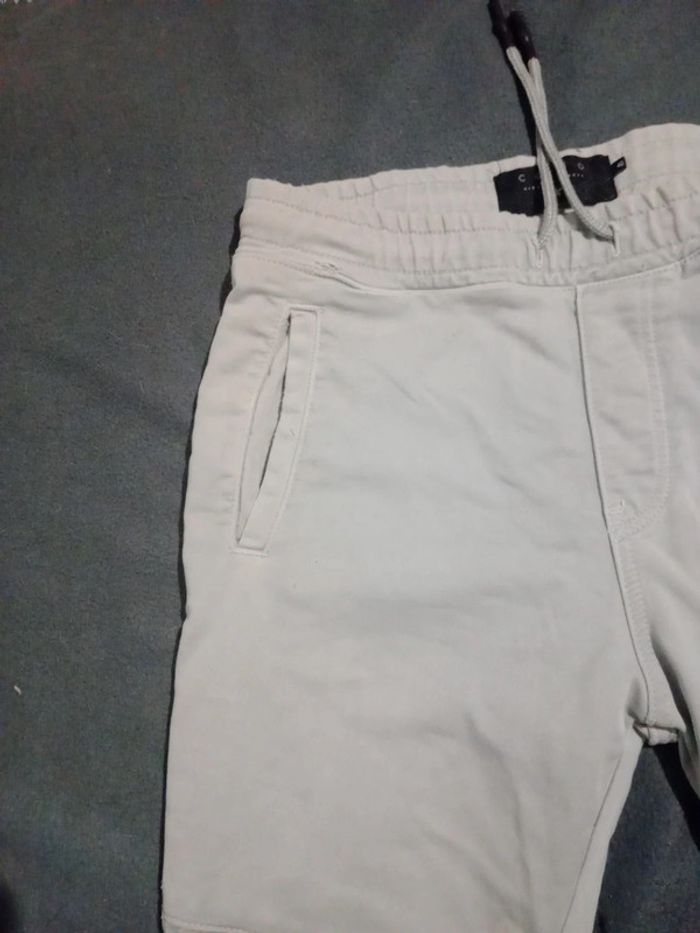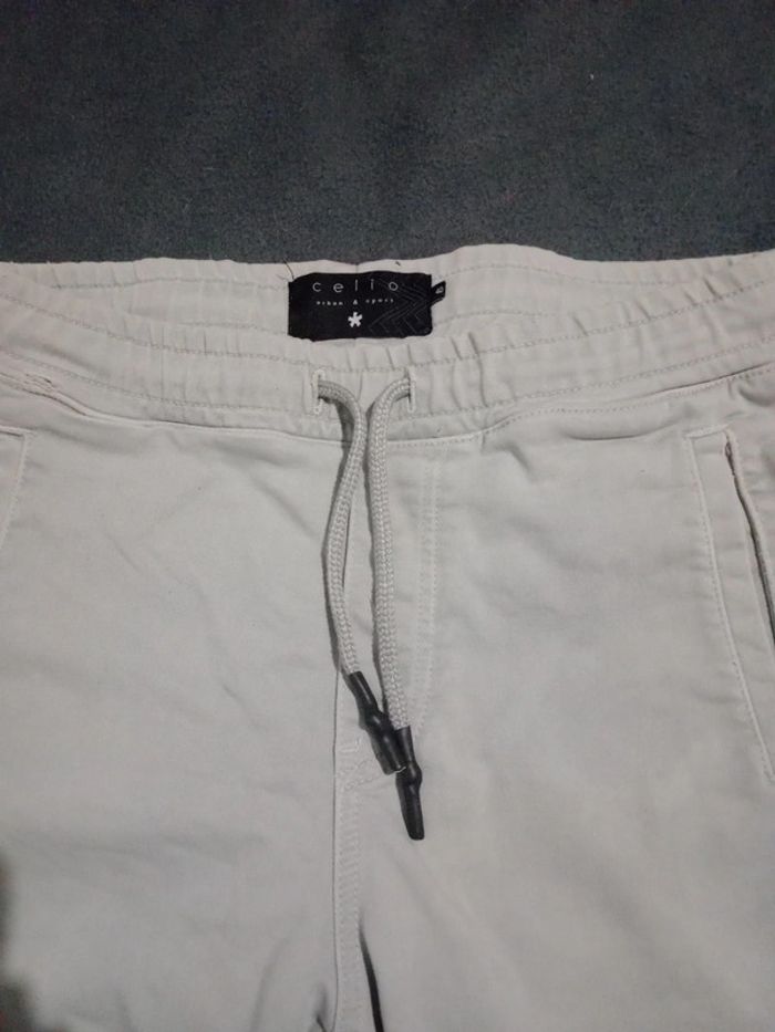 Ceinture élastique avec un lien ce qui permet de le resserrer Présence de deux poches au niveau des hanches ainsi que deux poches à l'arrière Présence d'une élastique dans le bas des jambes Usé dans le bas des jambes près de l'élastique voir les 4 dernières photos, à part cela reste en très bon état🥰 Super sympa avec les empiècements que l'on trouve au niveau des genoux et les différentes coutures, donne un look street, urban et sport Peut-être monter au niveau des genoux comme un bermuda 😉 Plus d'étiquette matière, doit être du coton Merci de vérifier les mesures car il me paraît petit pour un 40 homme Longueur 100 cm #carineleray_homme