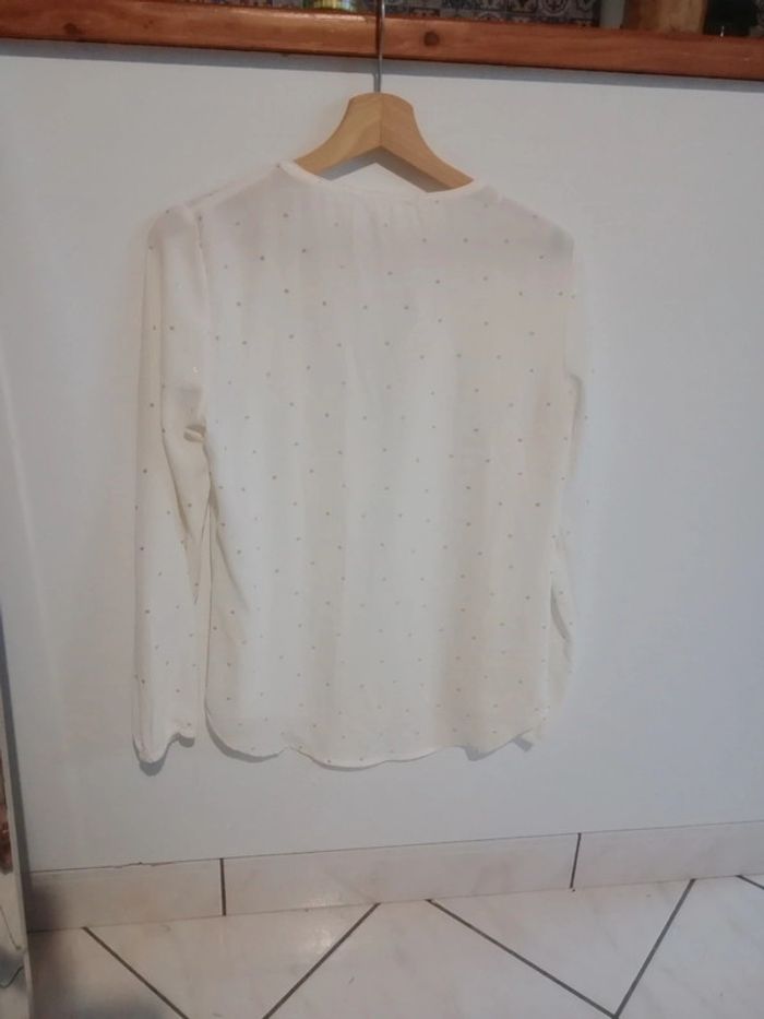 Blouse femme blanc cassé points dorés pailletés p - photo numéro 1