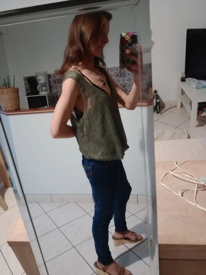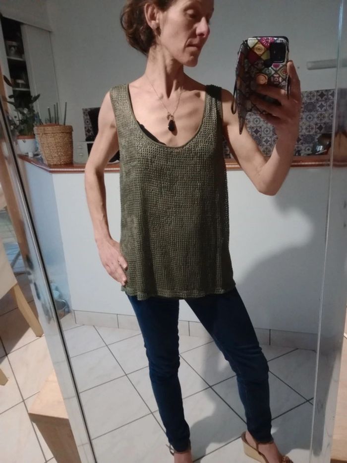 Top femme XL kaki ajouré c70 - photo numéro 14