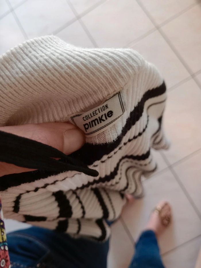 Pull chaussette Xs blanc et noir c26 - photo numéro 5