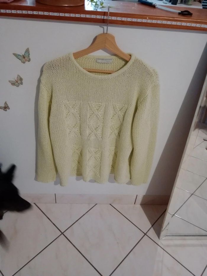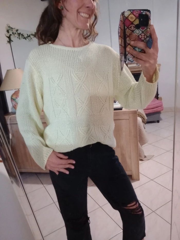 Pull femme XL mailles vert citron c64 - photo numéro 1