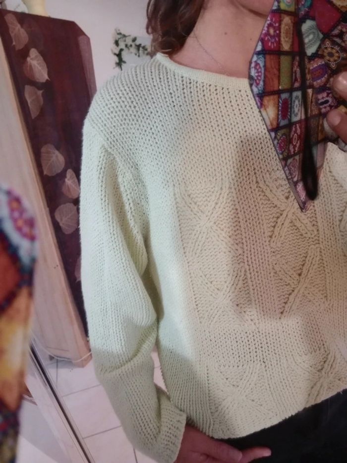 Pull femme XL mailles vert citron c64 - photo numéro 11