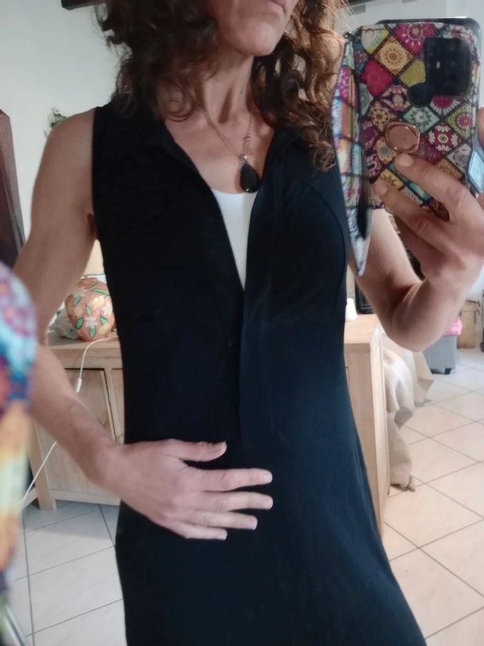 Magnifique robe ❤️ aspect neuf Une petite poche sur le côté gauche Sans manches Fluide , agréable à porter Classe, intemporelle ....peut-être être portée dans diverses situations Plus d étiquette matière , doit contenir de l elasthane dans la mesure où étirable Peut-être être polyester Aisselle à aisselle 42 cm Épaule à épaule 31 cm Longueur 94 cm #carineleray_femme_38