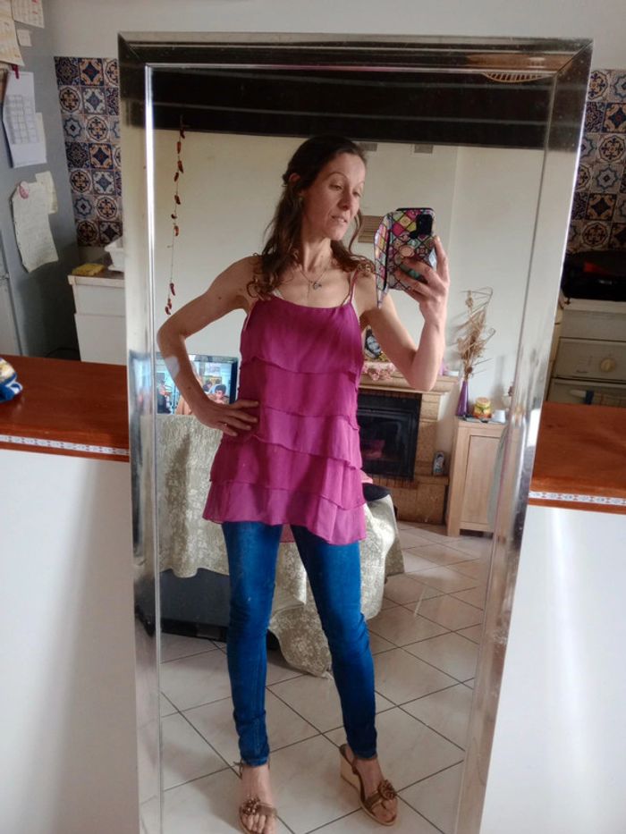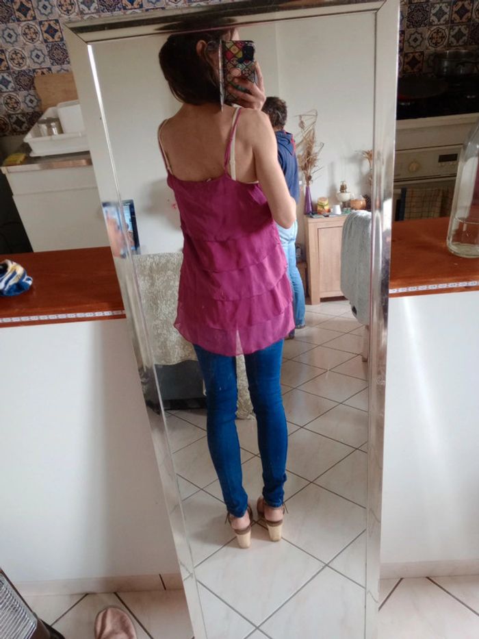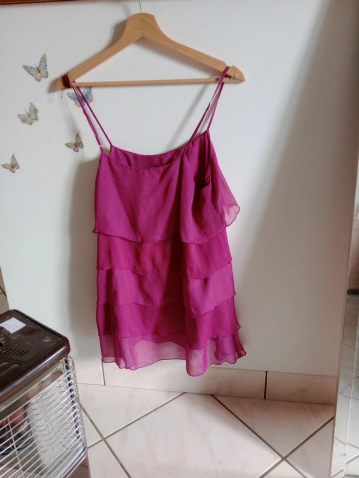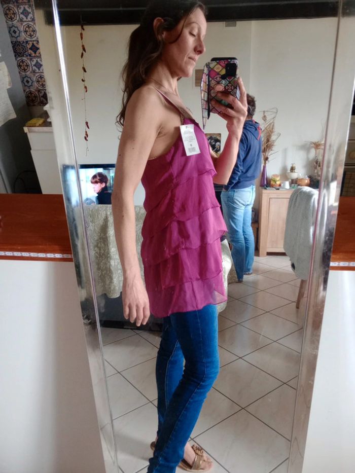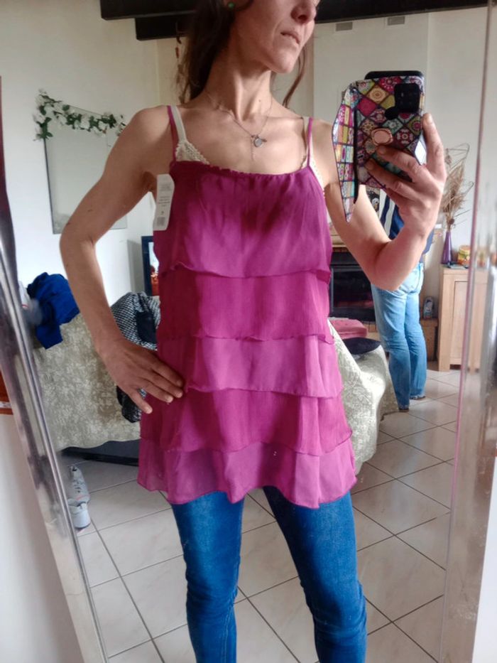 Superbe pièce, neuve avec étiquette ☺️ Composer de 5 superpositions de tissu type voile Fluide agréable à porter... Les bretelles sont réglables Longueur du bas de la bretelle en bas 58 cm #carineleray_femme_