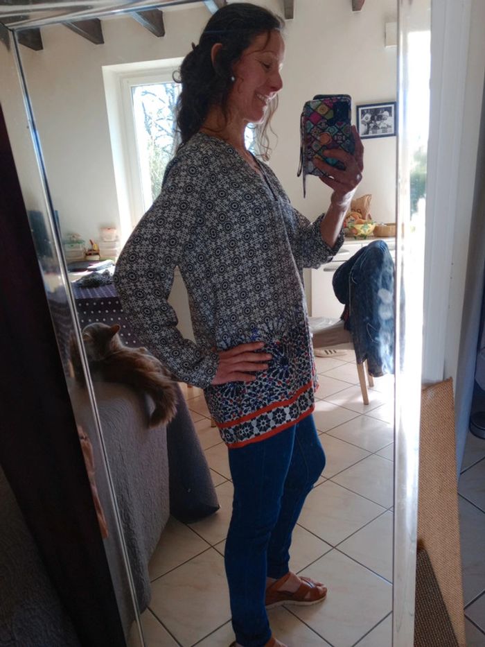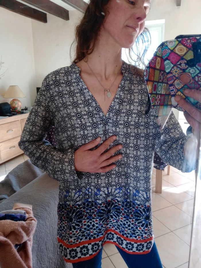 Superbe pièce, impeccablement entretenue 😍 magnifique Fluide légère agréable à porter... comme une seconde peau Plus d'étiquette matière je pense à du polyester Aisselle à aisselle 56 cm #carineleray_femme_40