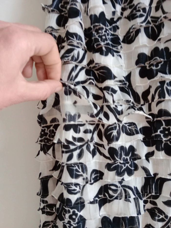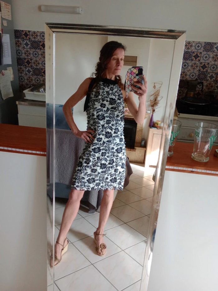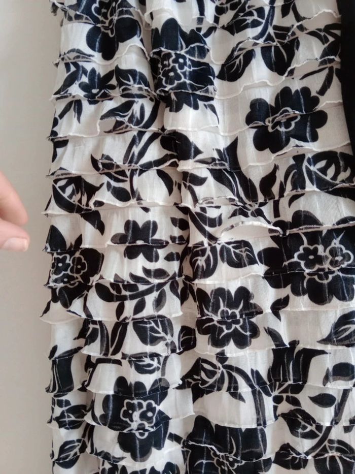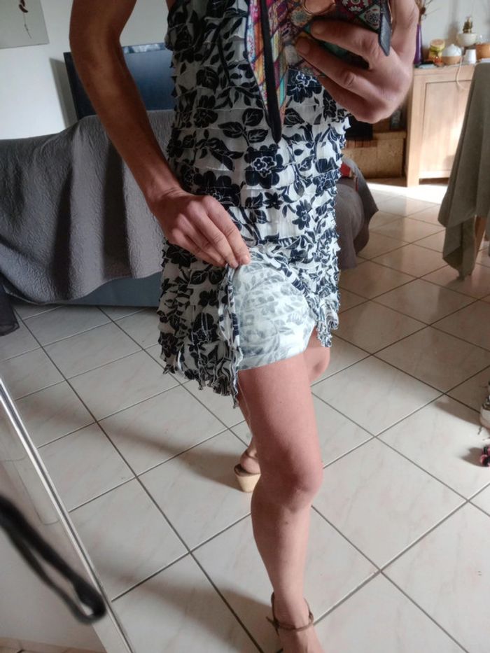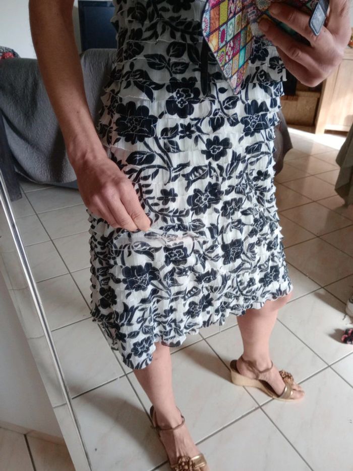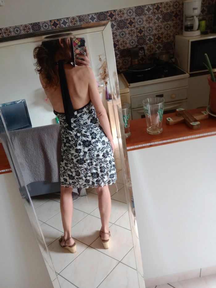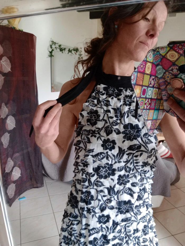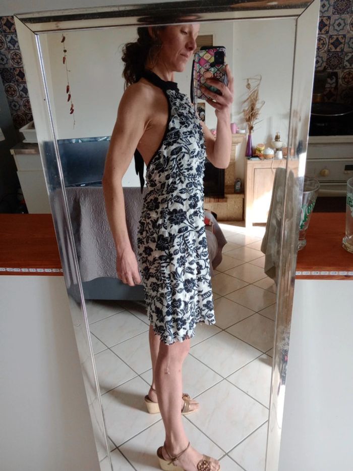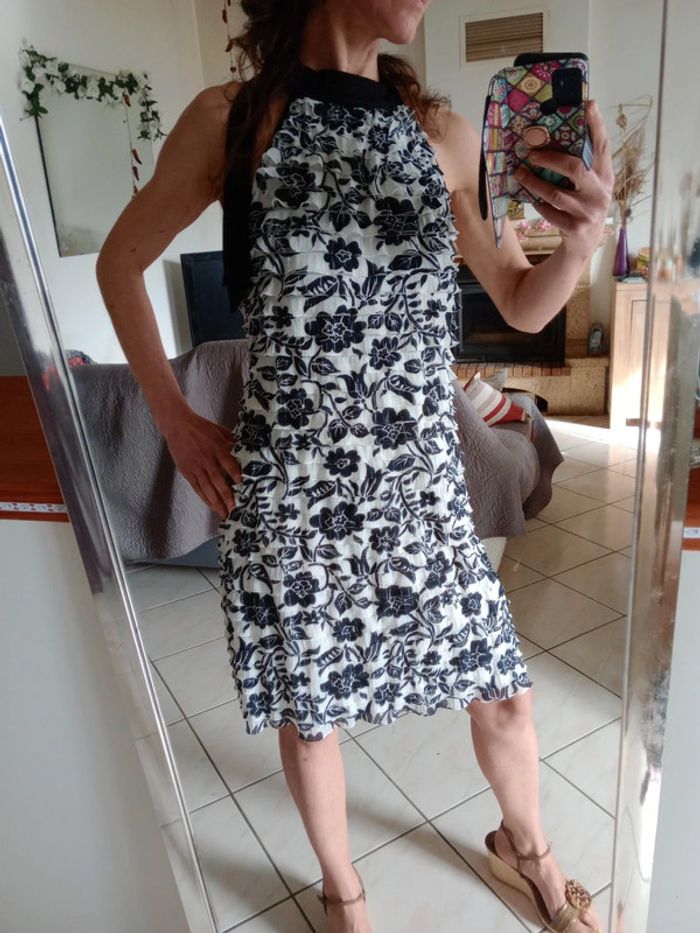 Superbe pièce impeccablement entretenue😍 Peut-être portée en toute occasion Superposition de plusieurs plis type voile Dos dénudé Attaché au niveau du cou grâce à un grand lien noir Présence de deux coussinets fins au niveau de la poitrine Plus d'étiquette taille #carineleray_femme_44