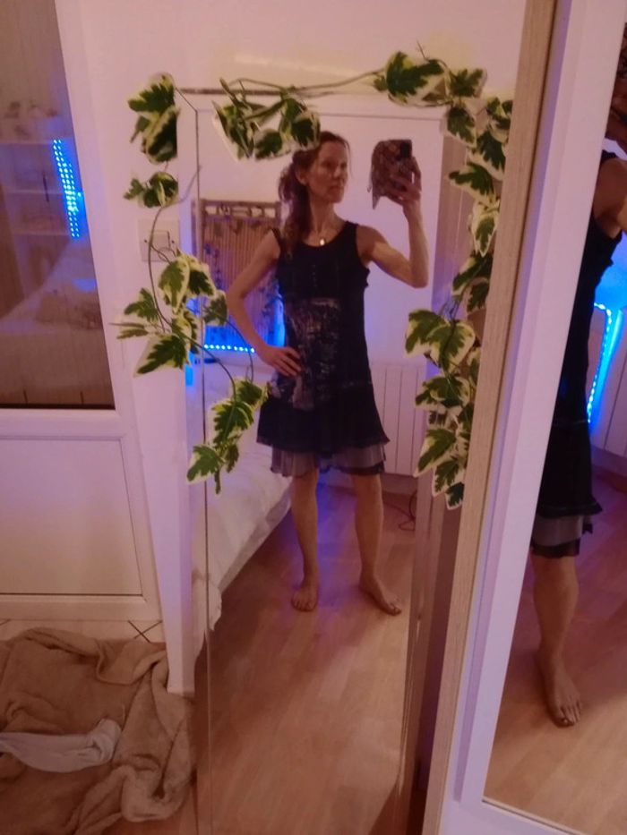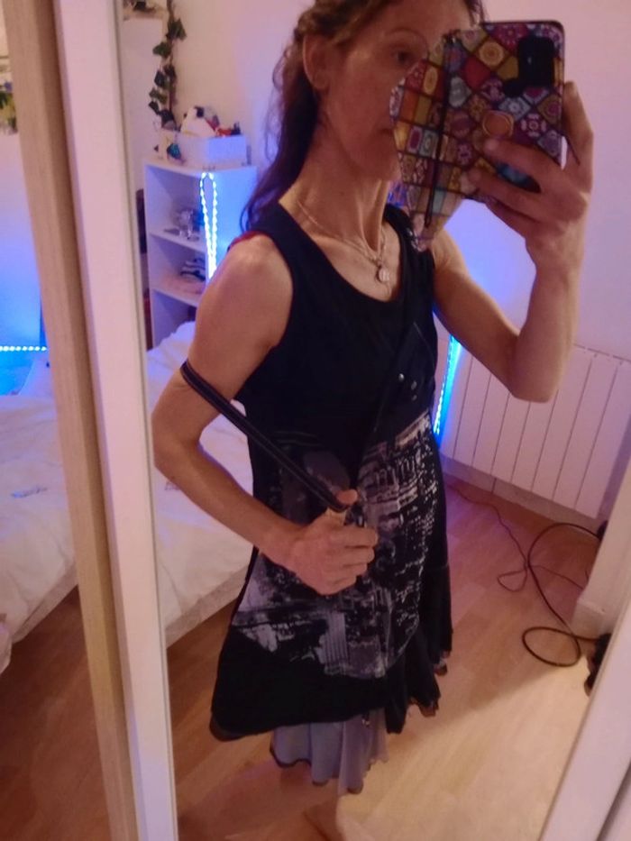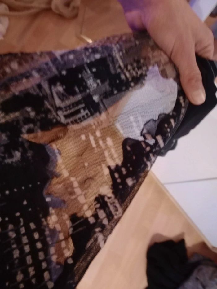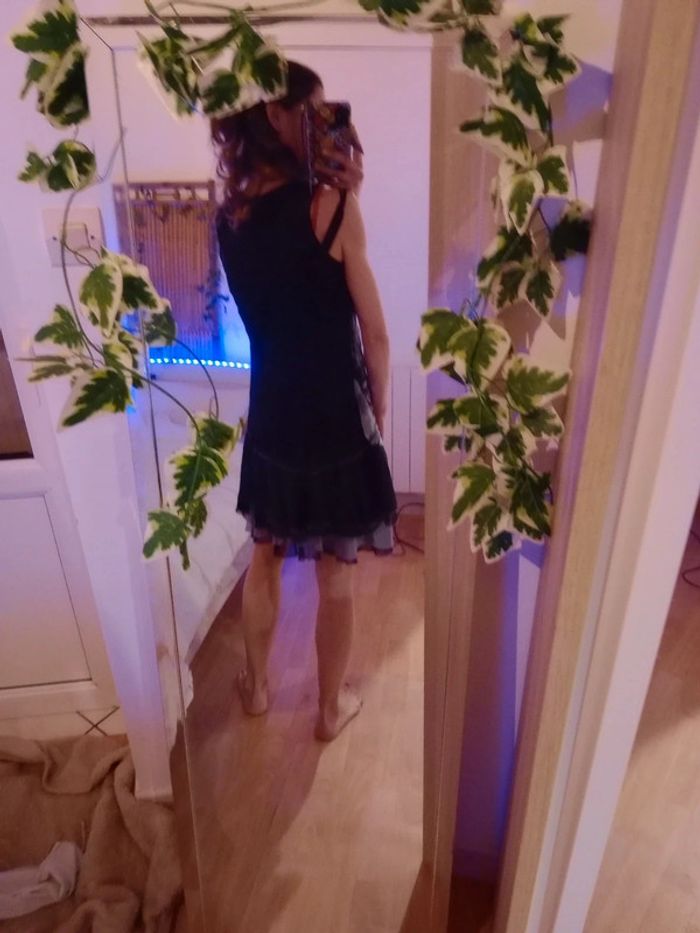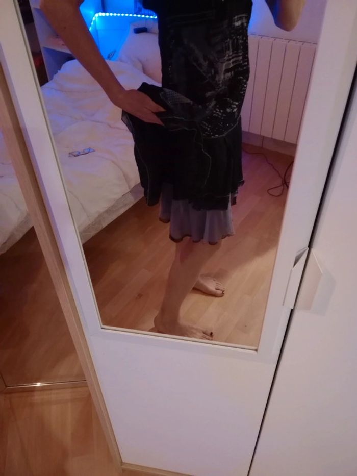 Jolie petite robe noire, manche débardeur, doublée dans le bas tissu type tulle Fantaisie décor type New York Indiquer taille 44 c'est plutôt une taille M car elle est tout à fait ajustée à ma taille et je porte du M #carineleray_femme_38