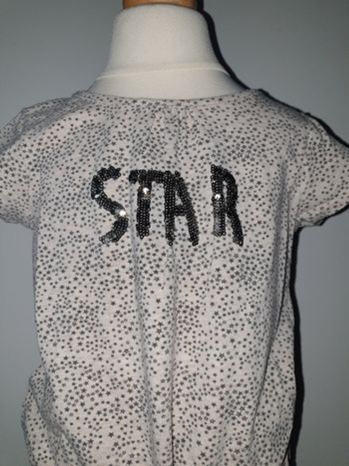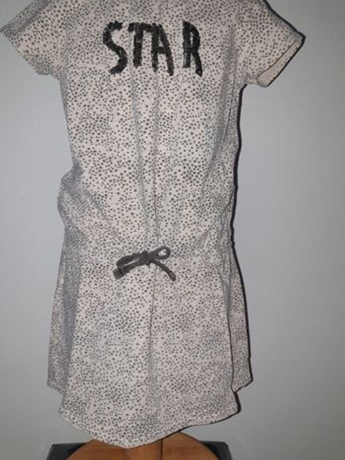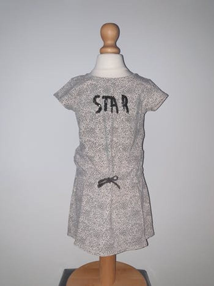 Robe d'été légère en TBE. Matière T-shirt, coloris beige motifs etoiles, avec écriture Star en sequins noirs. Taille 4 ans, marque Tape à l'oeil #4anssevy57