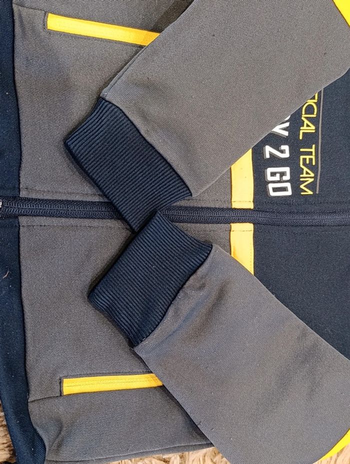 Veste zippée Bleue marine jaune et grise Official team ready 2 go Très bon état Légère bouloche sur le bas, voir photo Taille 3 ans #liibyboytroisans #3ans #veste #vestezipee
