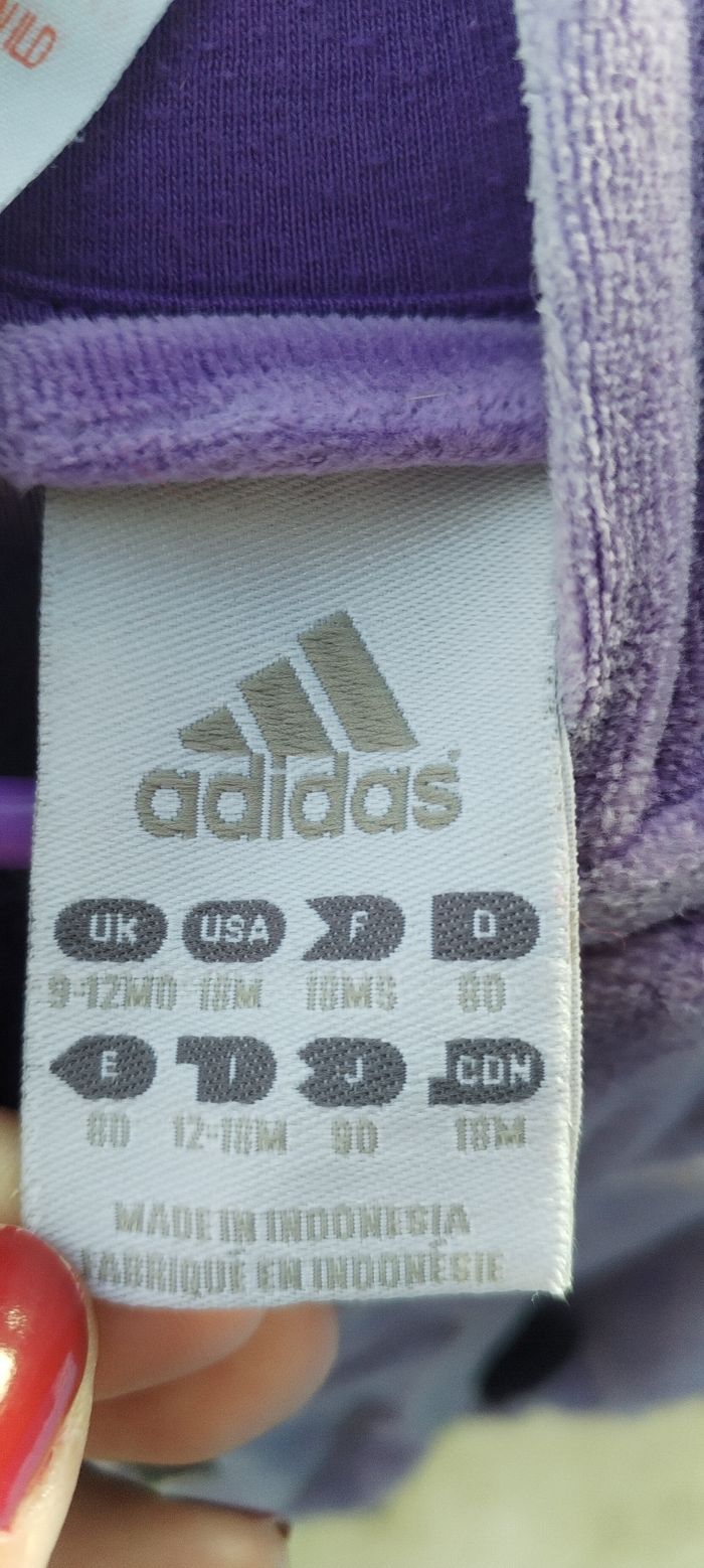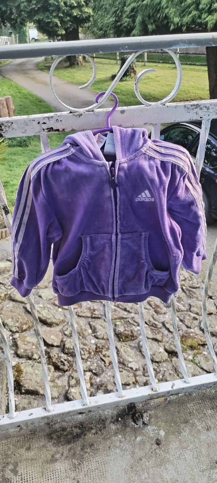 Gilet violet à capuche bébé fille. Marque Adidas. Taille 18 mois. Comme neuf. Peu porté.
