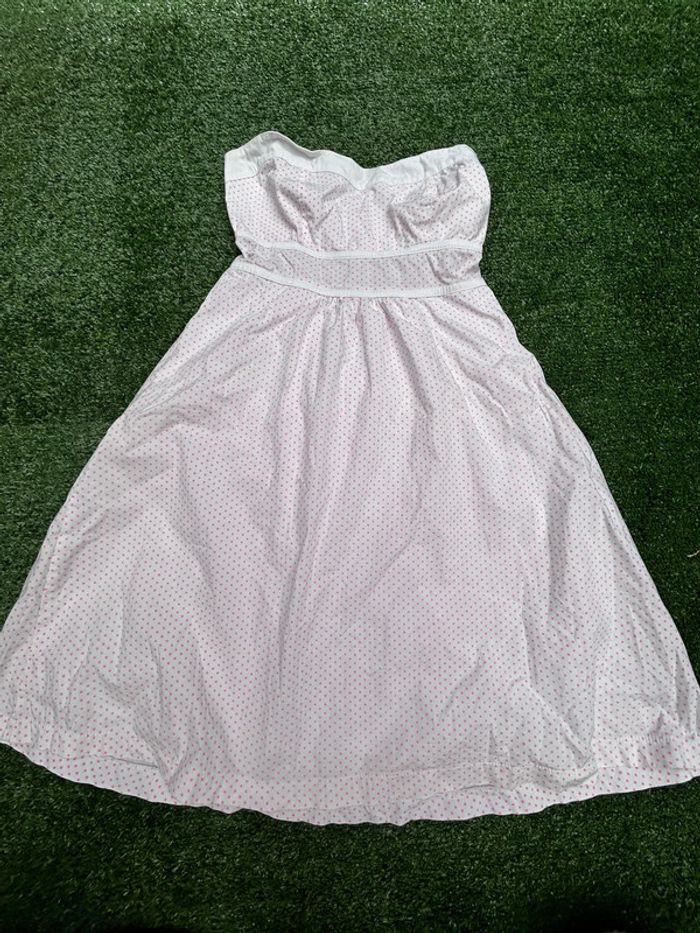 Très jolie robe blanche à pois rose