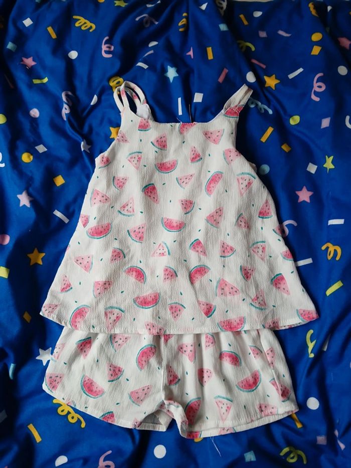 Jolie combi short pastèque fermeture zip dans le dos taille 2 ans
