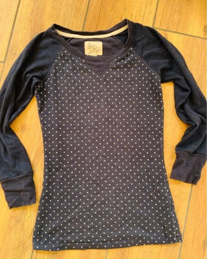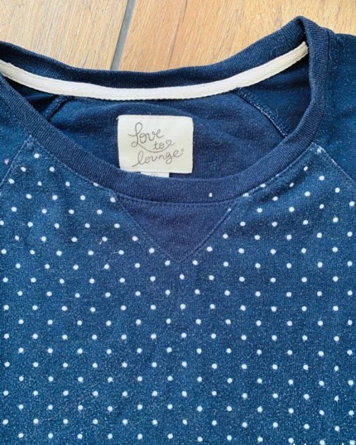 Très joli pull bleu marine à pois blancs Love to Lounge T.S
