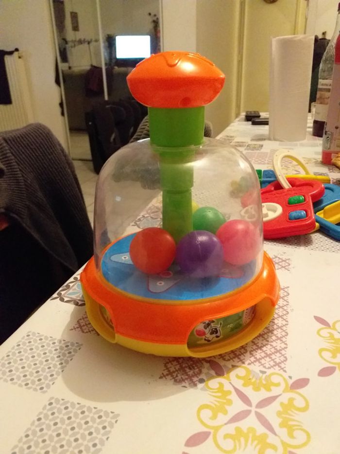 manège a boule qui tourne grâce a un poussoir manuel (ne nécessite pas de pile)