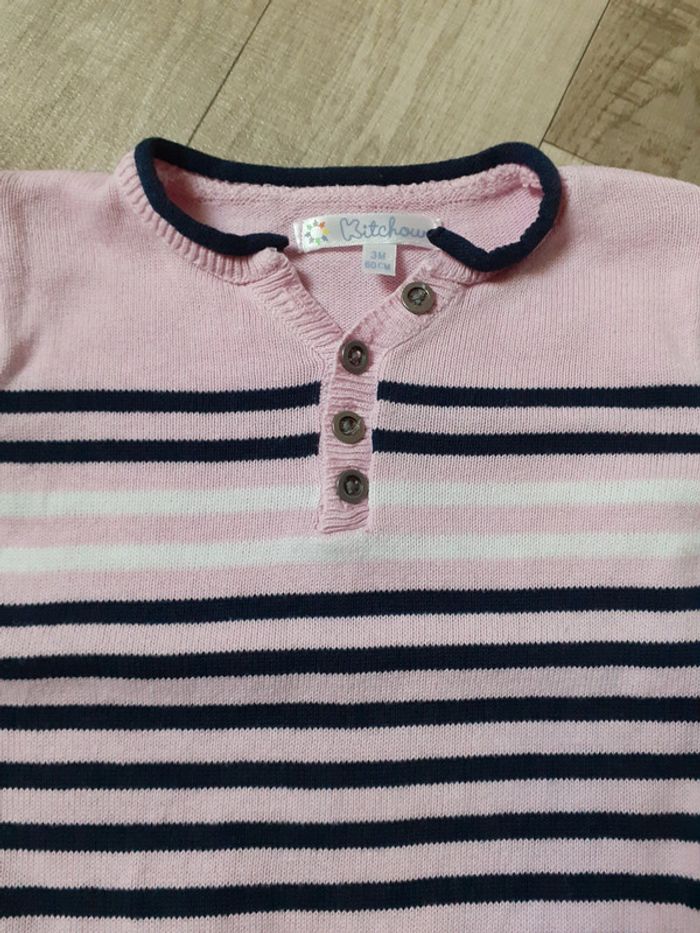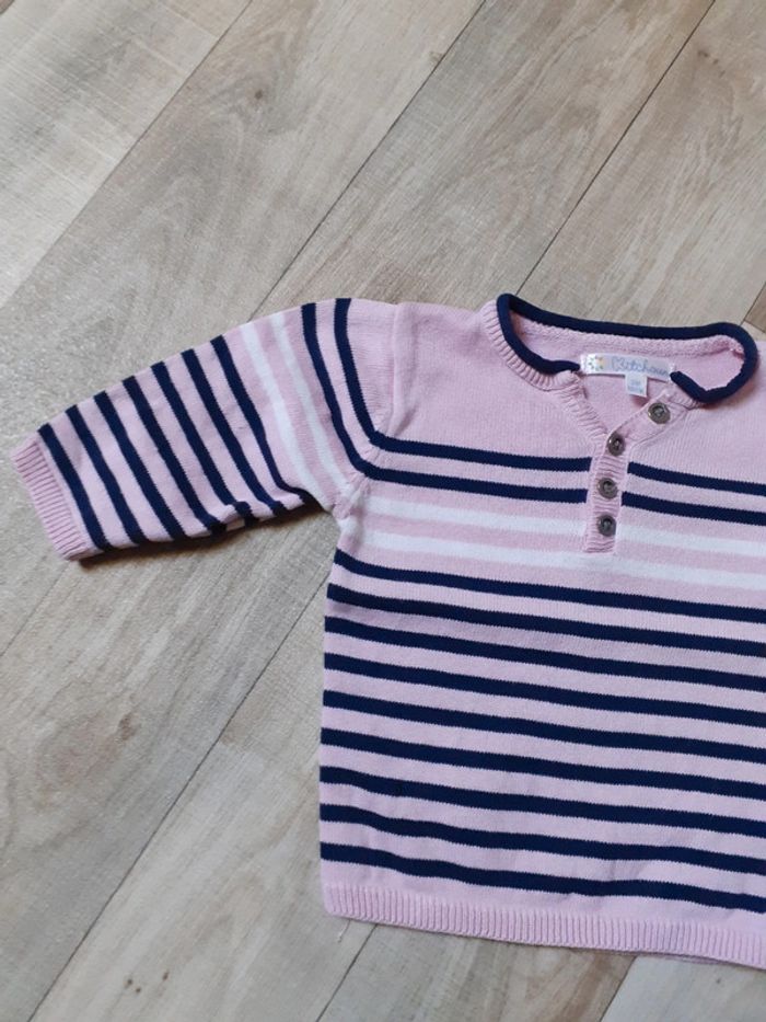 Pull fille rose a rayures bleues marines 3 mois - photo numéro 3