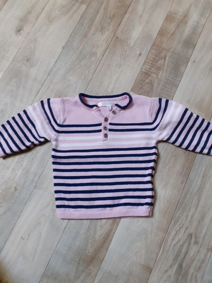 Pull fille rose a rayures bleues marines 3 mois - photo numéro 1
