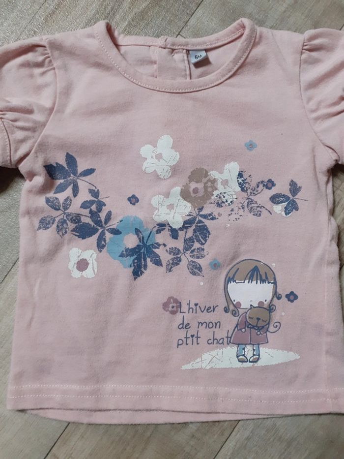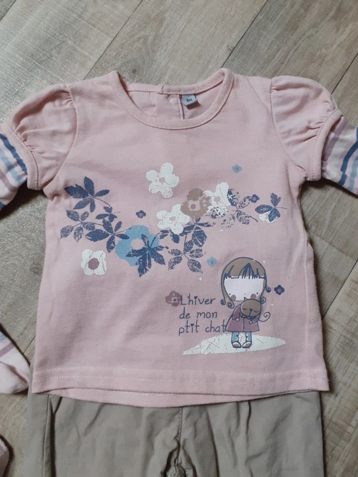 T-shirt et pantalon fille beige et rose 6 mois neuf - photo numéro 10