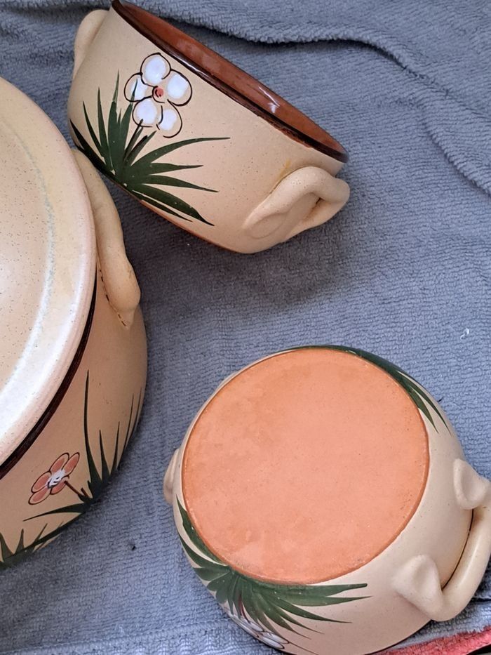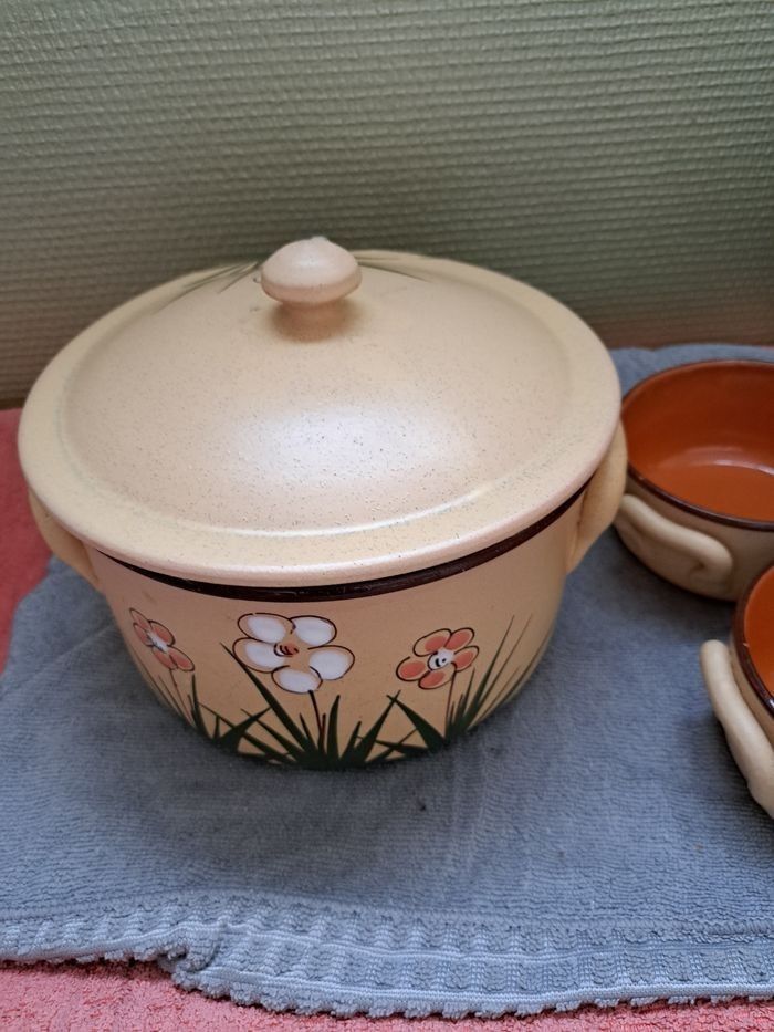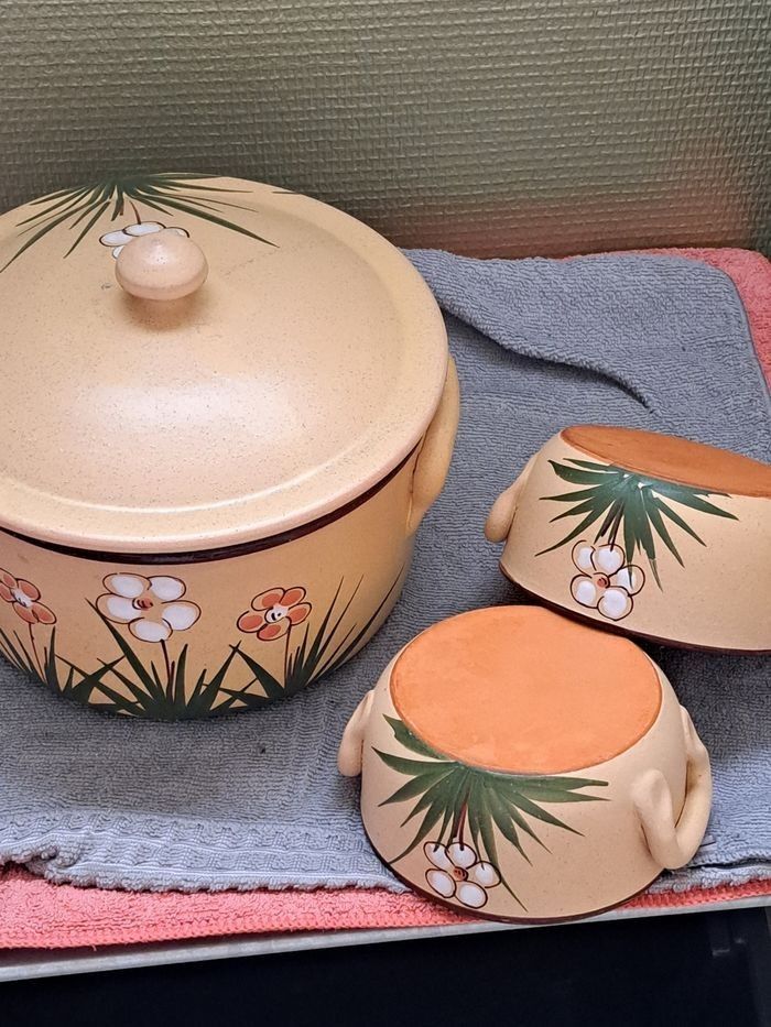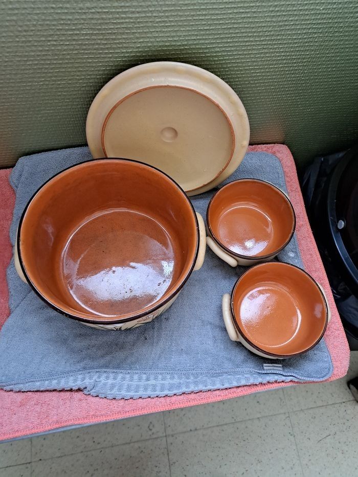 Casserole Poubelle de table en terre avec 2 bol