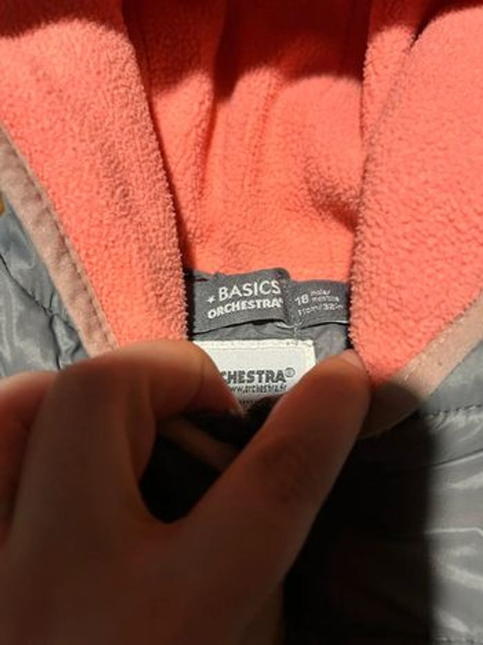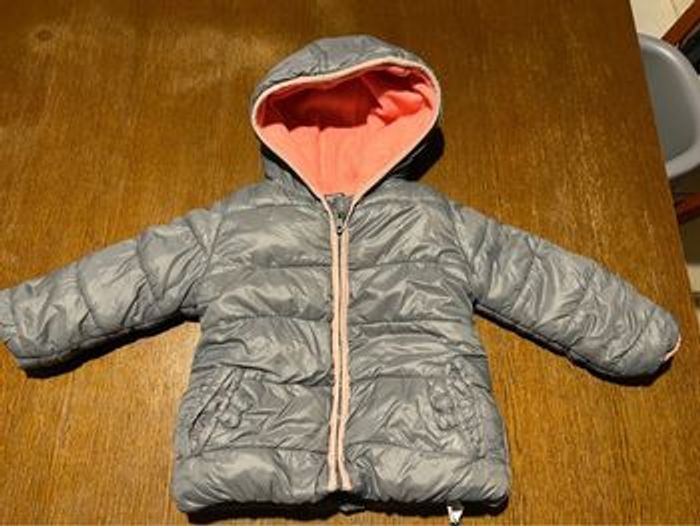 Doudoune grise et corail taille 18 mois marque orchestra en très bon état