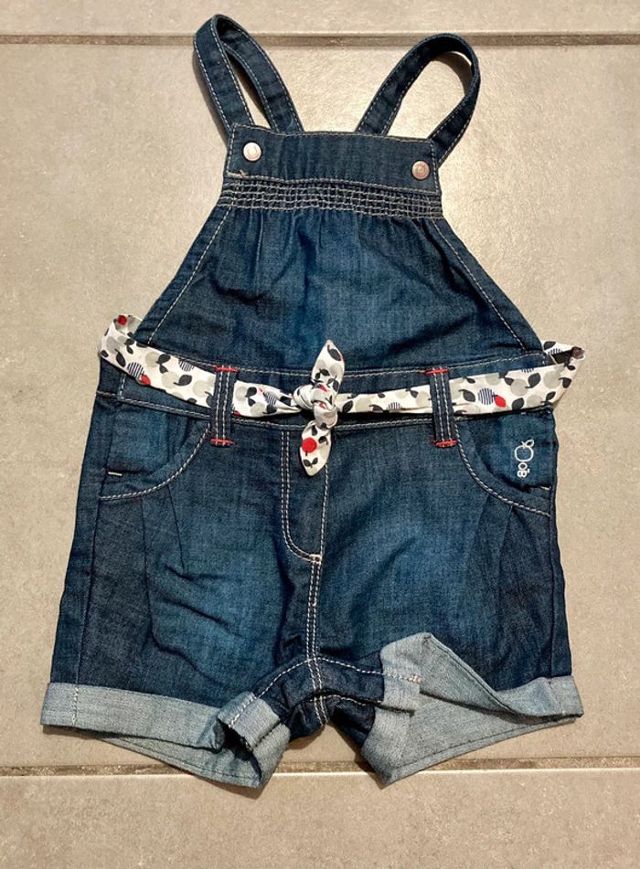 Ensemble bébé fille - Obaïbi Taille 6M - 68cm Boléro marine fermé par une bande de tissu à nouer Salopette short assortie jean bleu, bretelles réglables 2 positions et pressions à l’entrejambe pour faciliter le change Excellent état Possible remise en main propre sur Toulouse