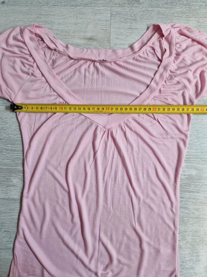 Tee-shirt rose pimkie décolleté en V indiqué taille S mais convient à un XS - photo numéro 4