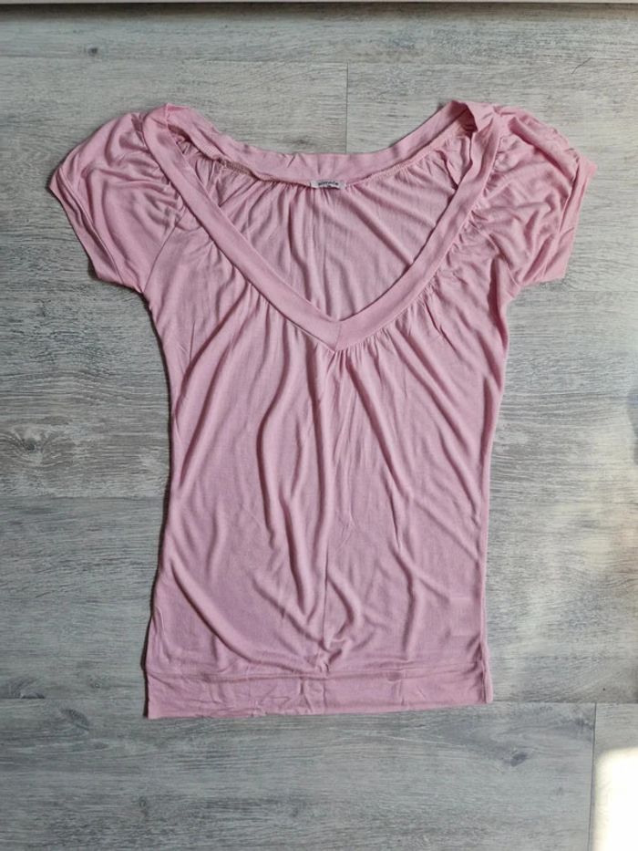 Tee-shirt rose pimkie décolleté en V indiqué taille S mais convient à un XS - photo numéro 1