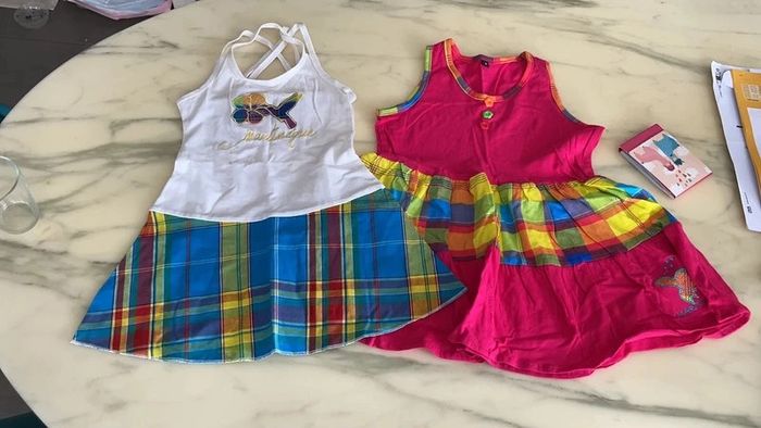Lot de deux robes Martinique Taille 4 ans meme si étiquette 6 Quelques petites tache sur le haut de la robe blanches voir photos