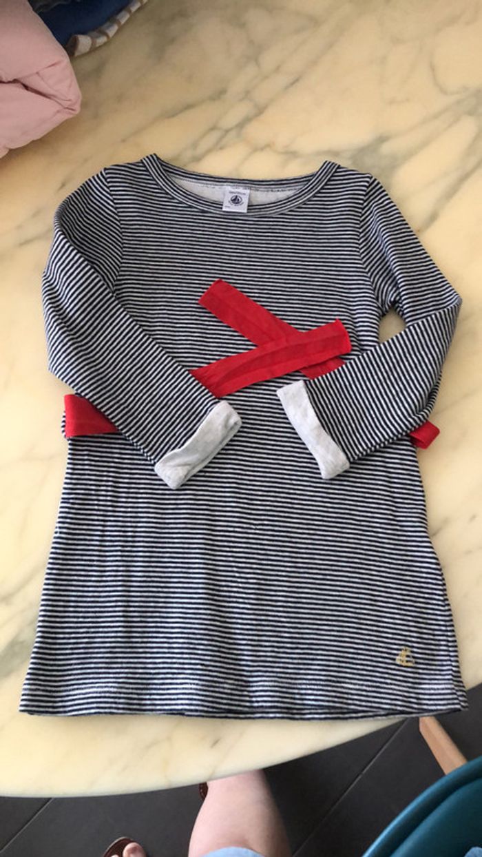robe petit bateau 4 ans rayée bleu et blanc ceinture rouge