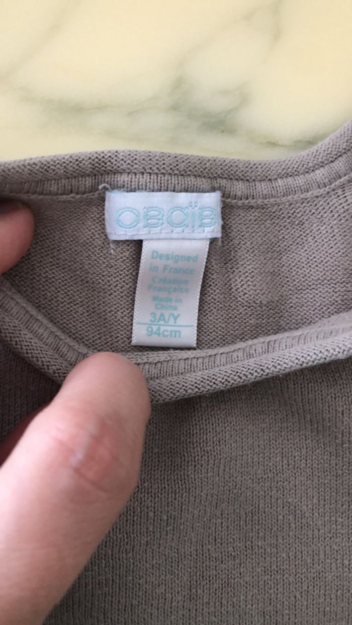 pull obaibi 3 ans beige avec une petite y’a hé sur une manche voir photo