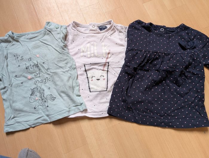 Lot de 3 t-shirts manches longues bébé fille 9 mois