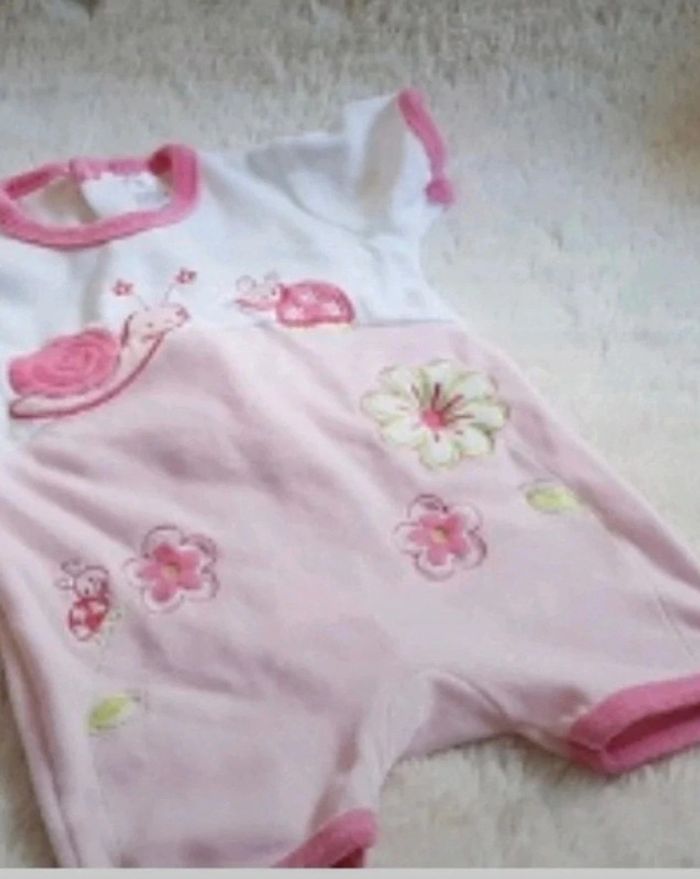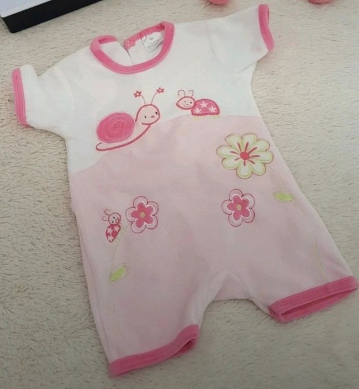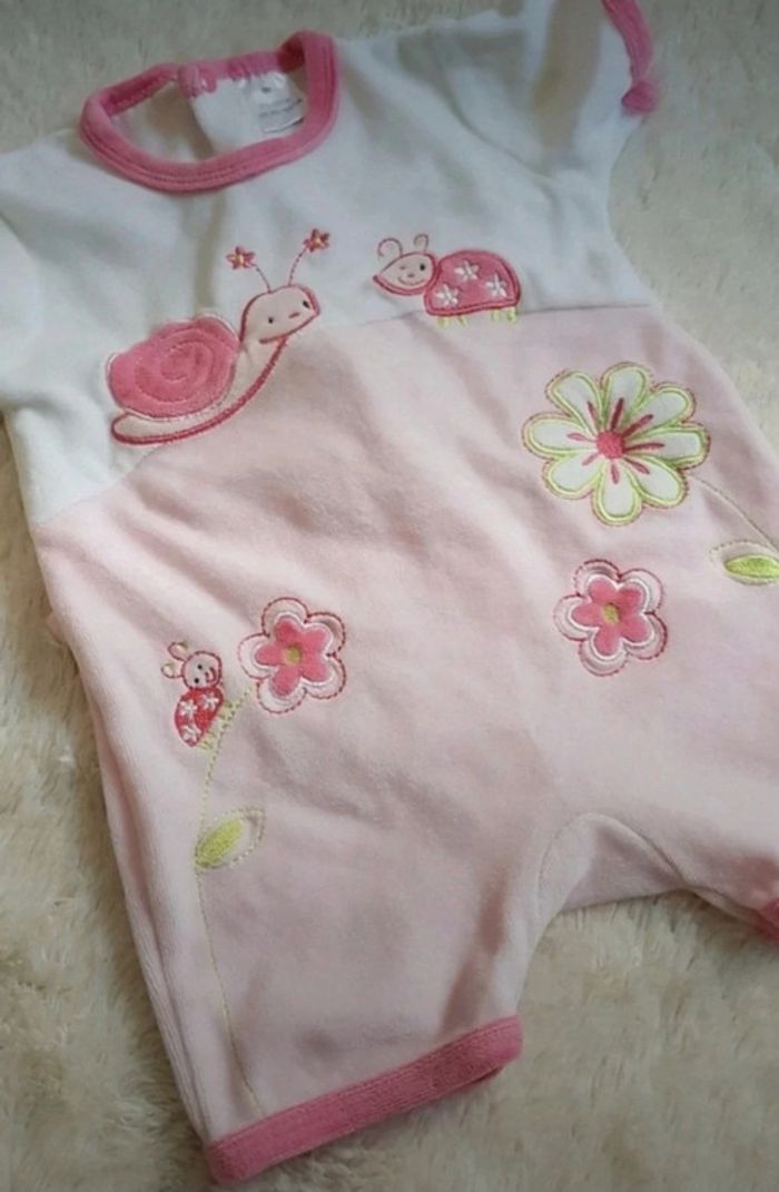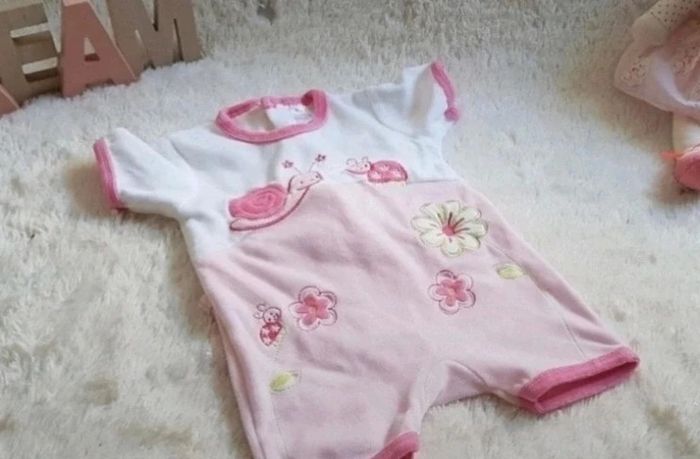 Pyjama court et manches courtes en velours blanc et rose en parfait état taille 6 mois #6moisseverinedl18