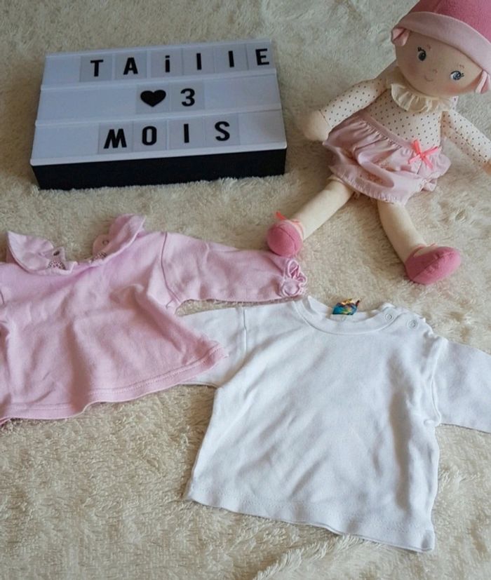 Lot de 2 tshirt manches longues en tres bon etat 3 mois #3moisseverinedl18