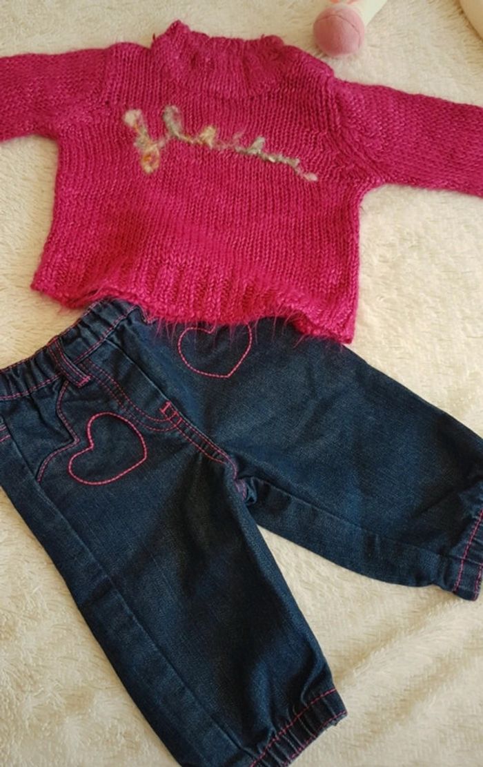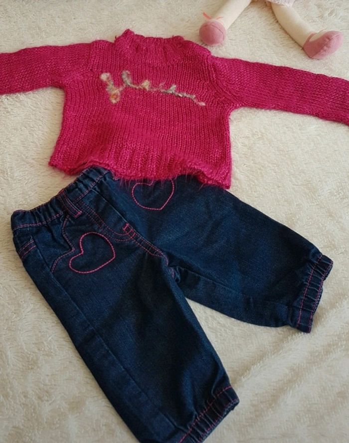 Ensemble hiver en taille 3 mois composé d'un jean neuf de chez Kiabi et d'un pull en laine rose en très bon état #3moisseverinedl18
