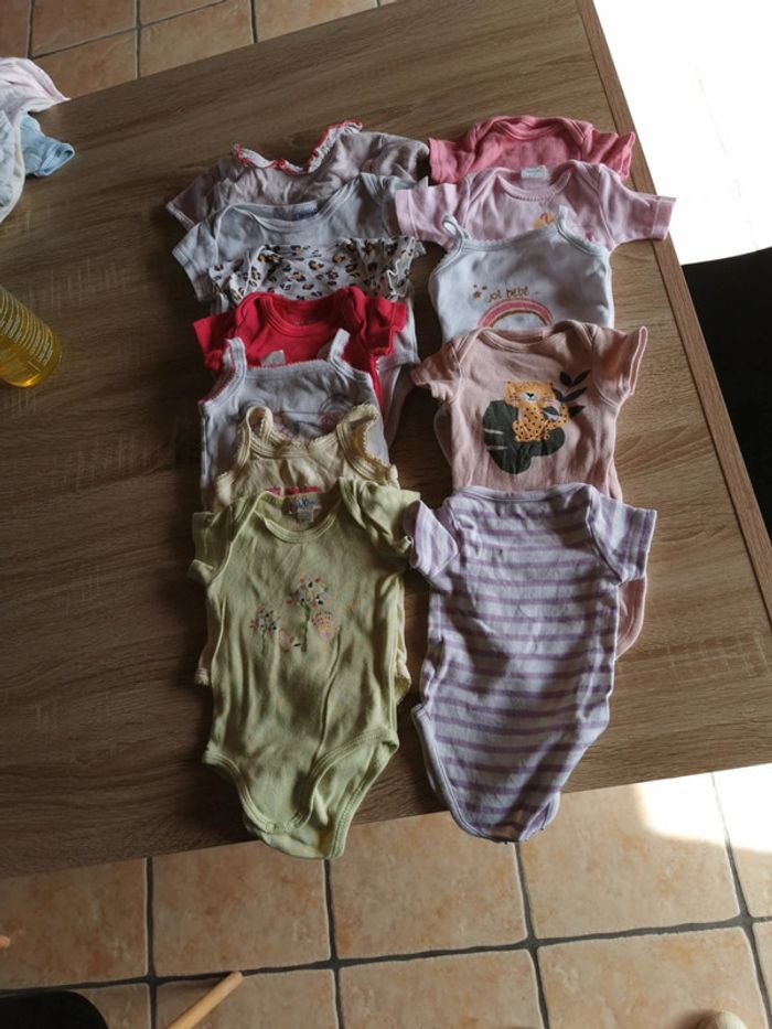 Lot 12 bodies 3 mois fille manches courtes. Plusieurs marques. #boîteàmalices #bodies #3mois #bébé #filles
