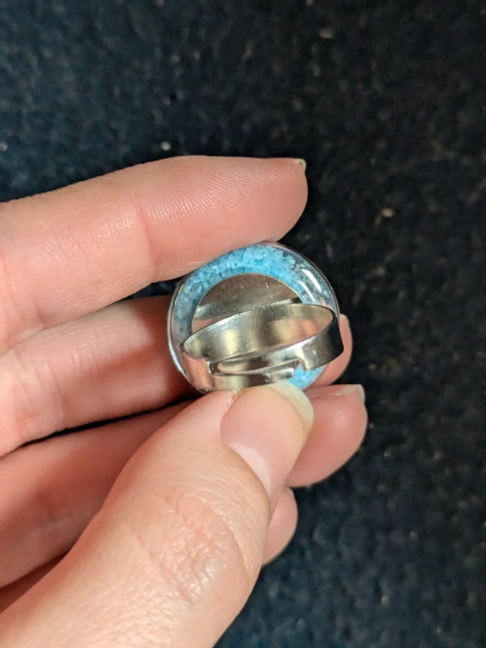 Bague fantaisie en verre transparente remplie de perles fines bleues. Taille ajustable. N'hésitez pas a checker mon dressing j'ai beaucoup de paires dans ce style. Et il y a une remise sur les lots. Pour 1€ de plus je peux rajouter une pochette pochette à maquillage rouge avec un petit miroir, si cela vous intéresse envoyez moi un message. #morganelcfbijoux