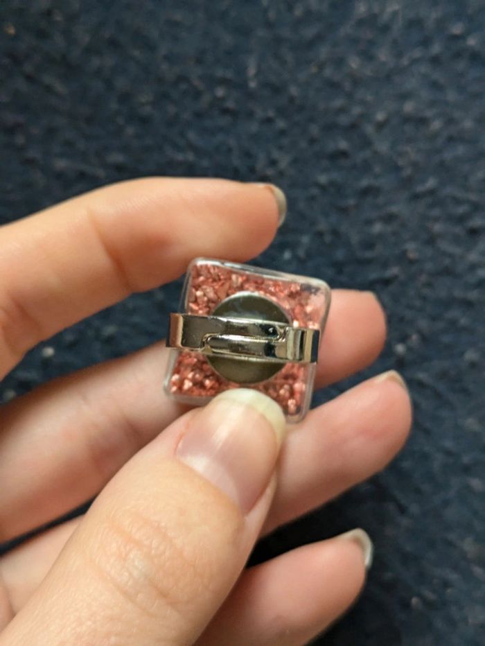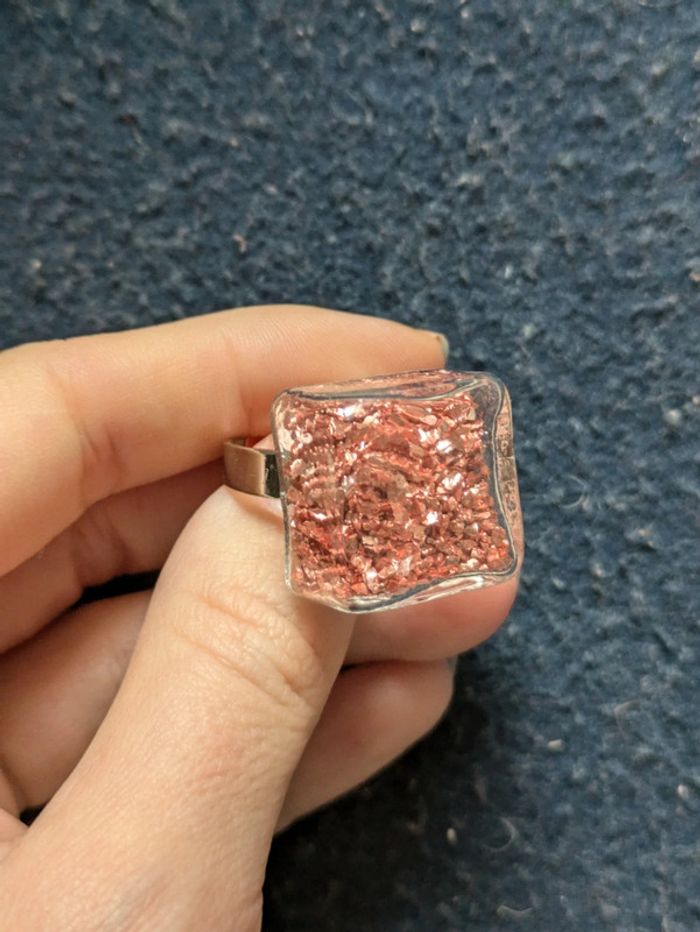 Bague fantaisie en verre transparente remplie de paillettes couleur orange/marron clair. Taille ajustable. N'hésitez pas a checker mon dressing j'ai beaucoup de paires dans ce style. Et il y a une remise sur les lots. Pour 1€ de plus je peux rajouter une pochette pochette à maquillage rouge avec un petit miroir, si cela vous intéresse envoyez moi un message. #morganelcfbijoux