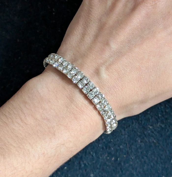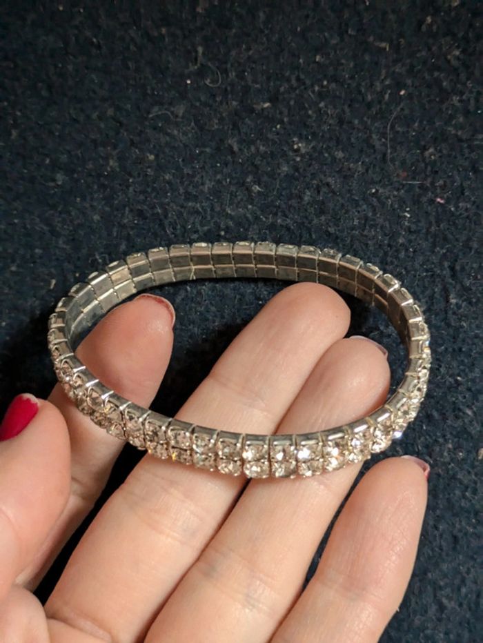 Joli bracelet avec des strass argentés, vintage, des années 80. N'hésitez pas a checker mon dressing j'ai beaucoup de paires dans ce style. Et il y a une remise sur les lots. Pour 1€ de plus je peux rajouter une pochette pochette à maquillage rouge avec un petit miroir, si cela vous intéresse envoyez moi un message. #morganelcfbijoux