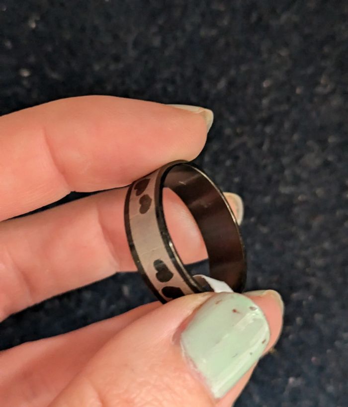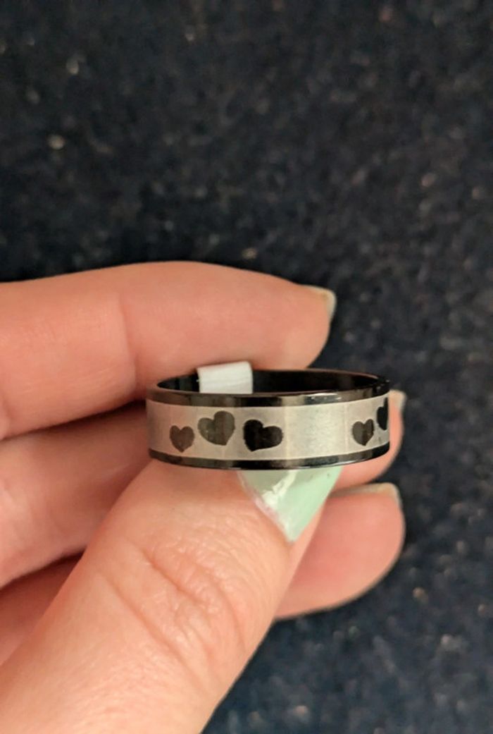 Bague en acier inoxydable argentée et noire avec des coeurs. Taille 70. N'hésitez pas a checker mon dressing j'ai beaucoup de bijoux. Et il y a une remise sur les lots. Pour 1€ de plus je peux rajouter une pochette pochette à maquillage rouge avec un petit miroir, si cela vous intéresse envoyez moi un message. #morganelcfbijoux