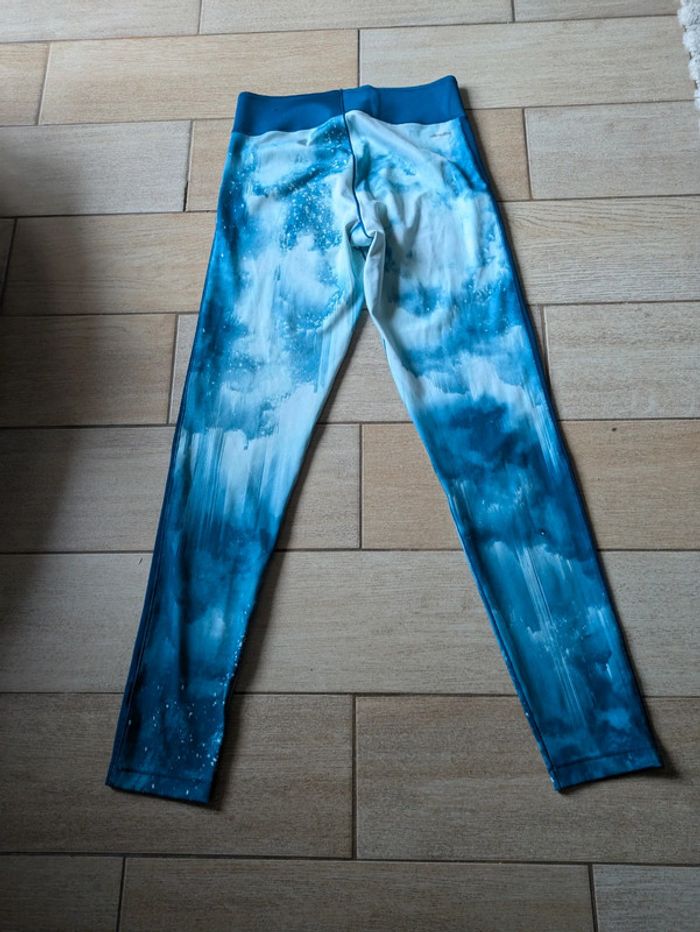 Legging long de sport a motifs bleus, taille semi haute. Très bon état