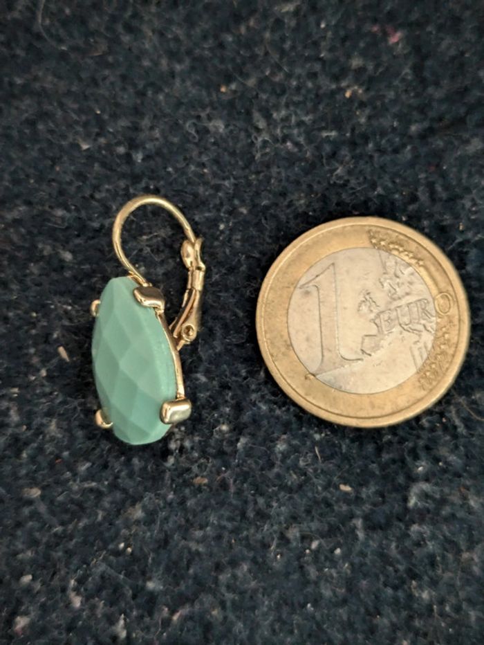 Boucles d'oreilles pendantes fantaisie turquoises. Vintage. Pour 1€ de plus je peux rajouter une pochette à maquillage rouge avec un petit miroir, si cela vous intéresse envoyez moi un message. Remise sur les lots profitez en, j'ai énormément de paires dans mon dressing #morganelcfbijoux