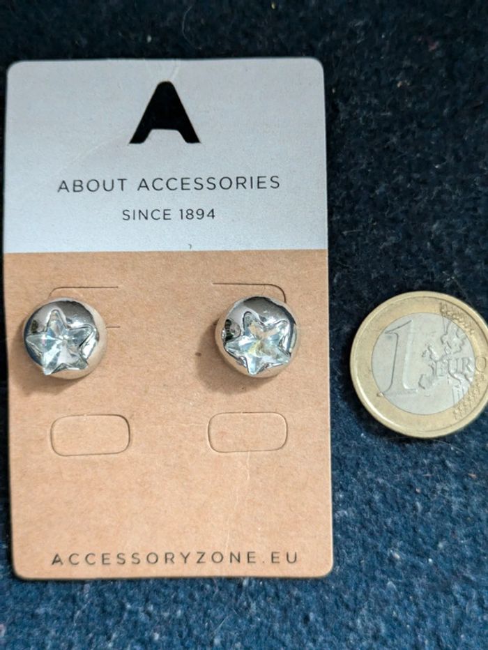 Boucles d'oreilles fantaisie rondes avec un strass en forme d'étoile a l'intérieur. Pour 1€ de plus je peux rajouter une pochette à maquillage rouge avec un petit miroir, si cela vous intéresse envoyez moi un message. Remise sur les lots profitez en, j'ai énormément de paires dans mon dressing #morganelcfbijoux