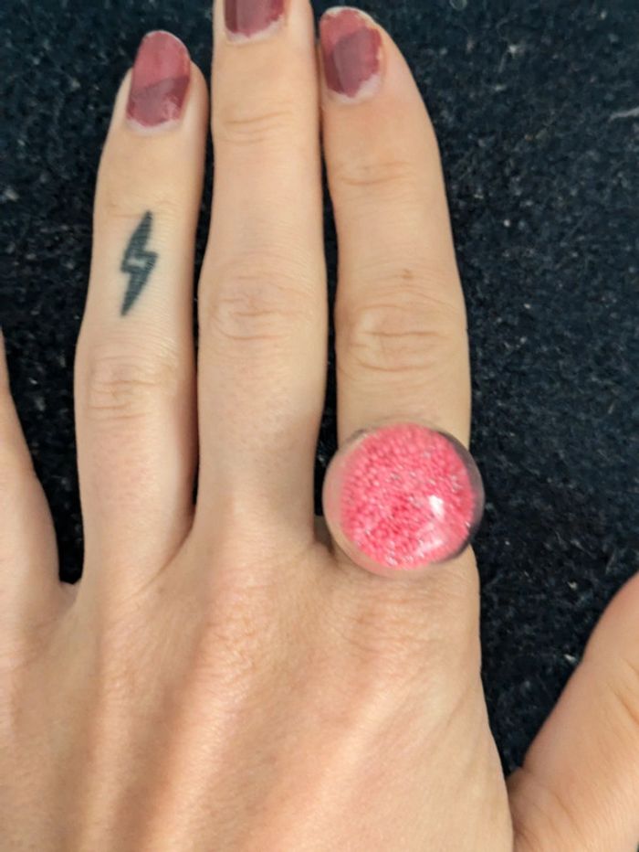 Bague fantaisie en verre transparente remplie de perles roses et blanches. Taille ajustable. N'hésitez pas a checker mon dressing j'ai beaucoup de paires dans ce style. Et il y a une remise sur les lots. Pour 1€ de plus je peux rajouter une pochette pochette à maquillage rouge avec un petit miroir, si cela vous intéresse envoyez moi un message. #morganelcfbijoux