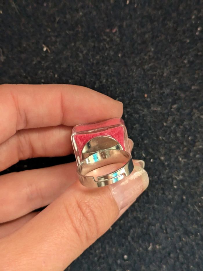 Bague fantaisie en verre transparente remplie de perles fines rouges. Taille ajustable. N'hésitez pas a checker mon dressing j'ai beaucoup de bagues dans ce style. Et il y a une remise sur les lots. Pour 1€ de plus je peux rajouter une pochette pochette à maquillage rouge avec un petit miroir, si cela vous intéresse envoyez moi un message. #morganelcfbijoux