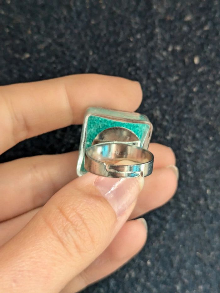Bague fantaisie en verre transparente remplie de perles fines vertes/turquoises. Taille ajustable. N'hésitez pas a checker mon dressing j'ai beaucoup de bagues dans ce style. Et il y a une remise sur les lots. Pour 1€ de plus je peux rajouter une pochette pochette à maquillage rouge avec un petit miroir, si cela vous intéresse envoyez moi un message. #morganelcfbijoux