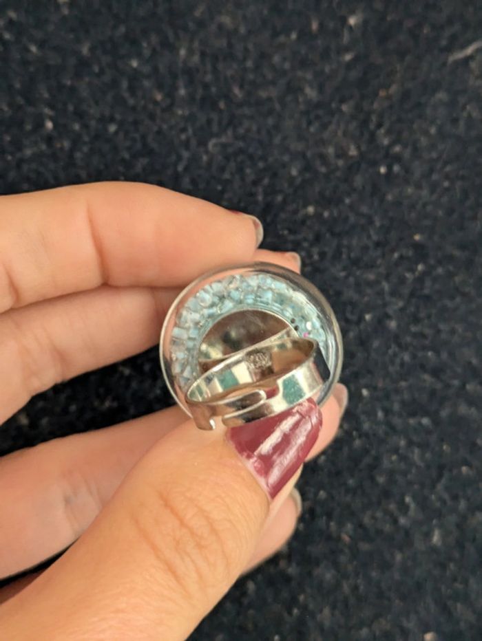 Bague fantaisie en verre transparente remplie de perles bleues clair. Taille ajustable. N'hésitez pas a checker mon dressing j'ai beaucoup de paires dans ce style. Et il y a une remise sur les lots. Pour 1€ de plus je peux rajouter une pochette pochette à maquillage rouge avec un petit miroir, si cela vous intéresse envoyez moi un message. #morganelcfbijoux