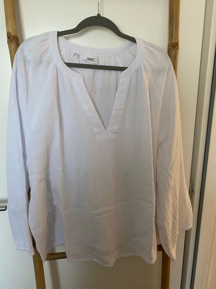 Tunique blanche en gaz de coton Très bon état Dimensions : aisselles à aisselles 72cm Longueur 66cm Taille 52
