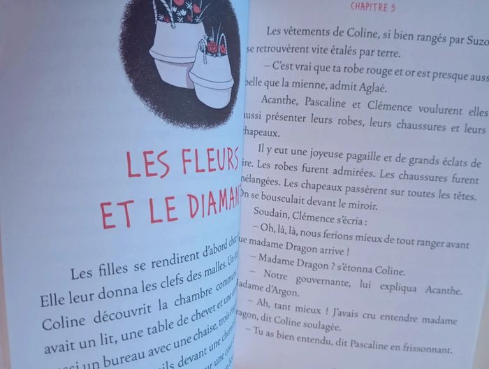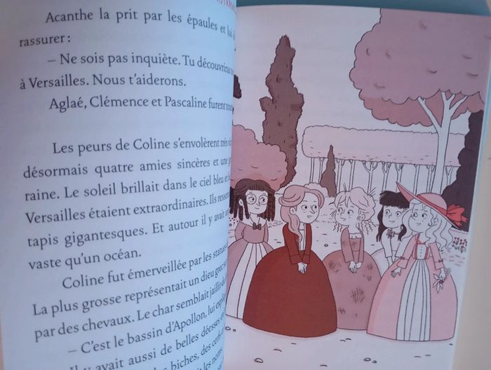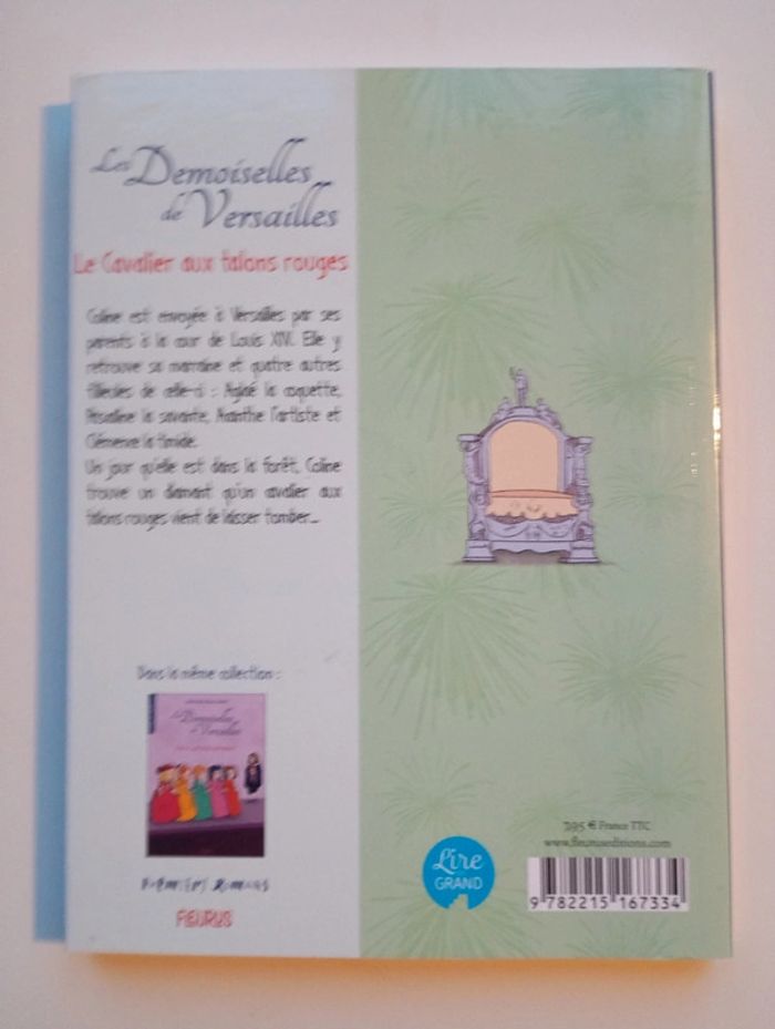 Coline de Tambour-Battant, neuf ans, est envoyée à Versailles par ses parents, afin d’apprendre les bons usages à la cour de Louis XIV. Elle y retrouve madame du Chêne, sa marraine et quatre autres filleules de celle-ci : Aglaé, la coquette, Pascaline la savante, Acanthe l’artiste et Clémence la timide. Coline est ravie de découvrir la vie à Versailles en compagnie de ses nouvelles amies. Un jour qu’elle est dans la forêt, Coline trouve un diamant qu’un maladroit cavalier aux talons rouges vient de laisser tomber. N’ayant pas reçu la permission de se trouver là, Coline n’ose pas demander l’aide des adultes et se confie à ses amies. Les cinq fillettes se lancent alors à la recherche de l'étrange cavalier dans tout Versailles... Éditeur ‏ : ‎ FLEURUS 120 pages Âge de lecture ‏ : ‎ 7 - 10 ans Dimensions ‏ : ‎ 14 x 1 x 19 cm Livre en très bon état je vends un autre livre de la même collection et sur Versailles #phil_peg_versailles. #versailles #chateau #demoiselle #cour #demoisellesdeversailles #roi #louisXIV