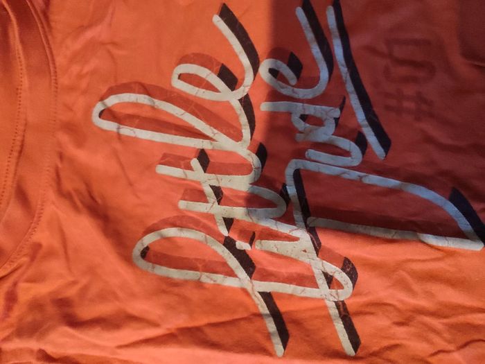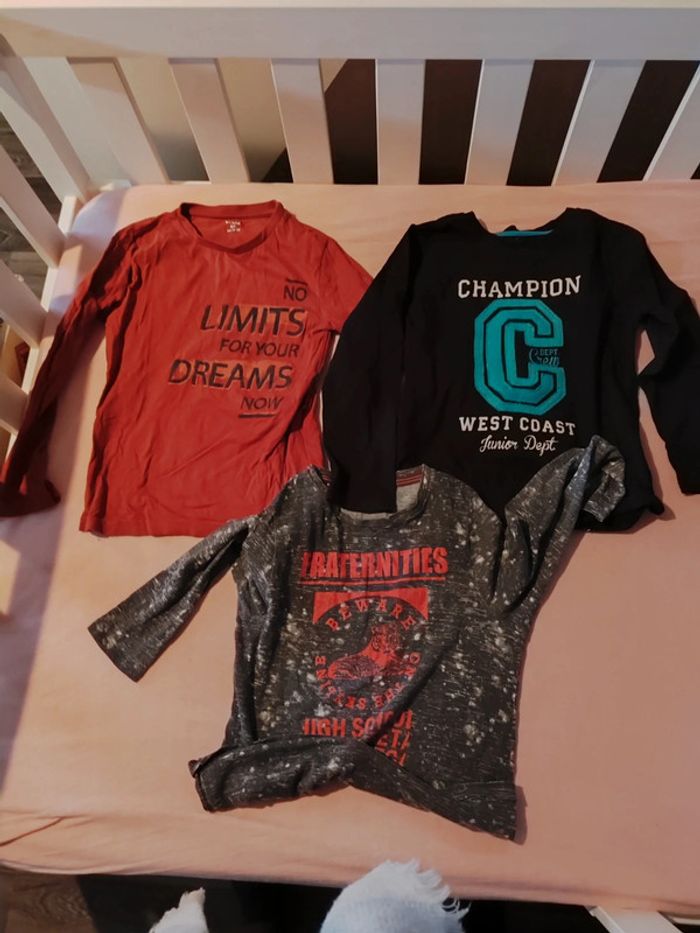 5 t-shirts manches longues. Le orange a l'écriture un peu effacé