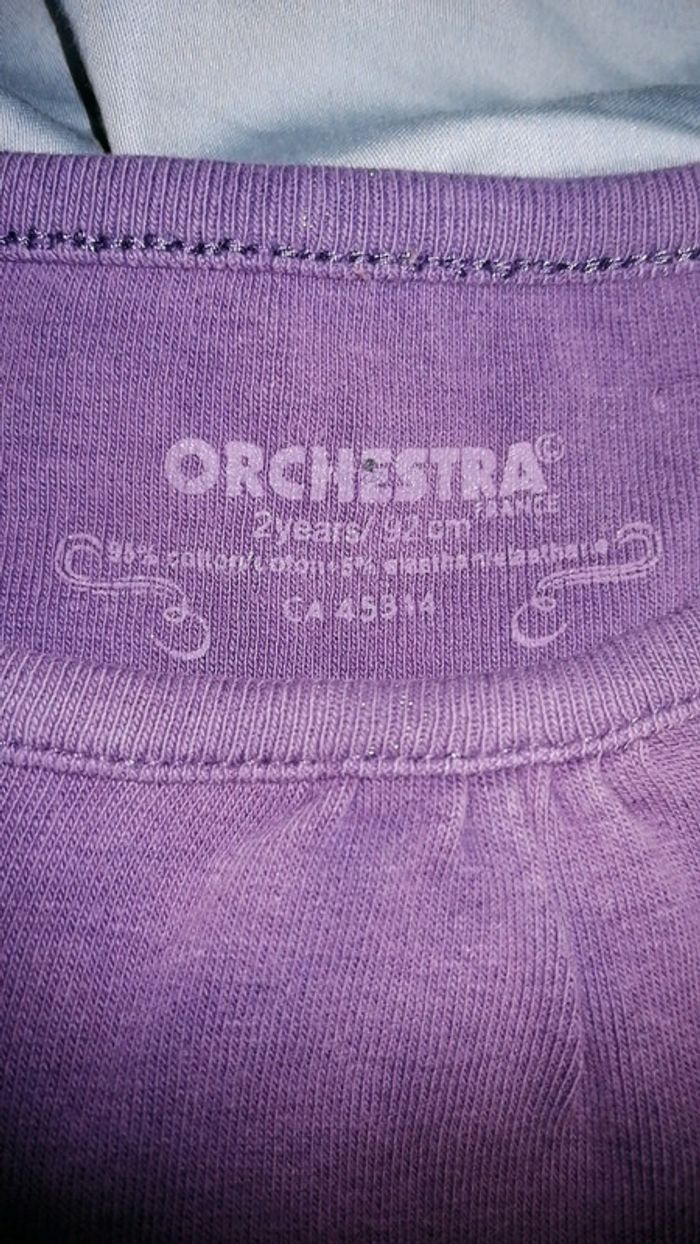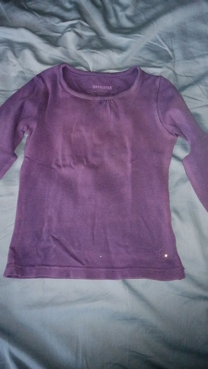 Tee-shirt manches longues, violet, orchestra, 2 ans, très bon état