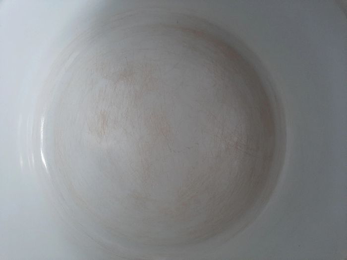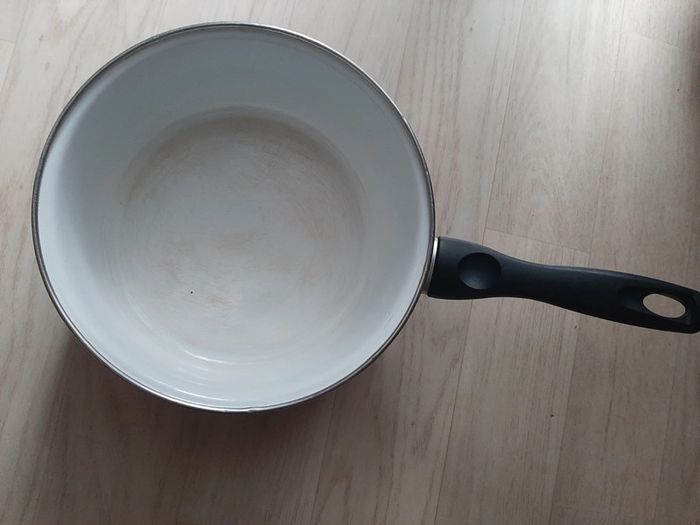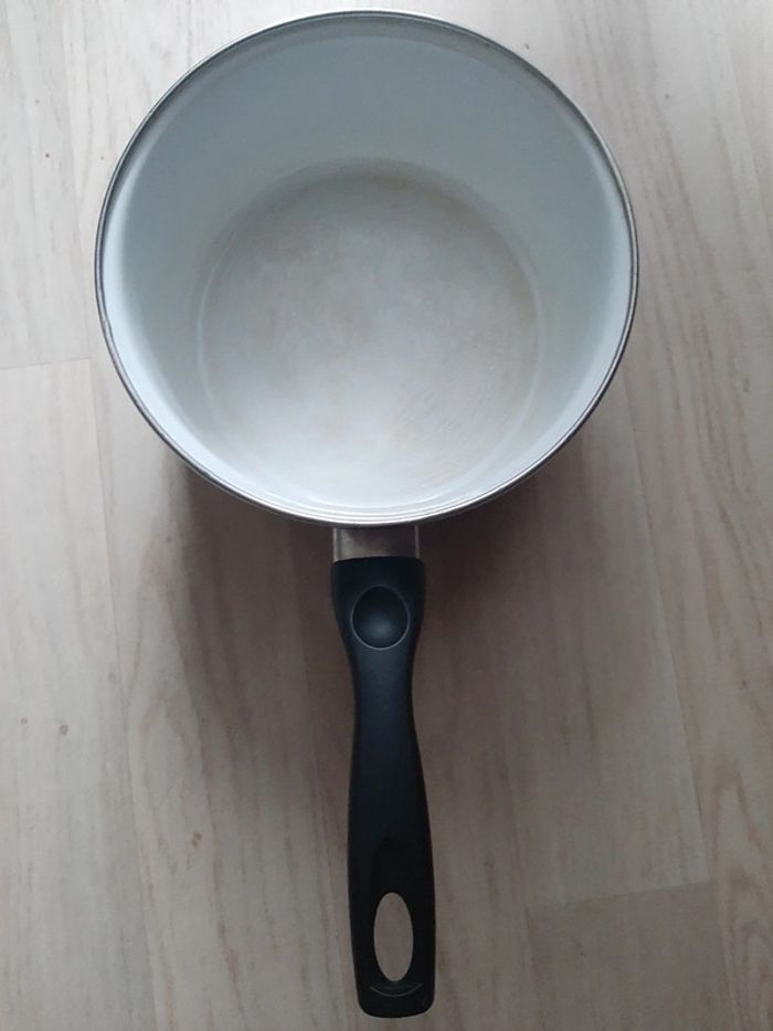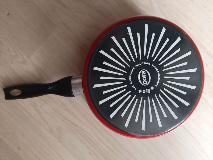 Casserole rouge intérieur blanc de chez Cora Pour gaz électrique induction vitrocéramique Diamètre 19 cm Avez des rayures à l'intérieure voir photos